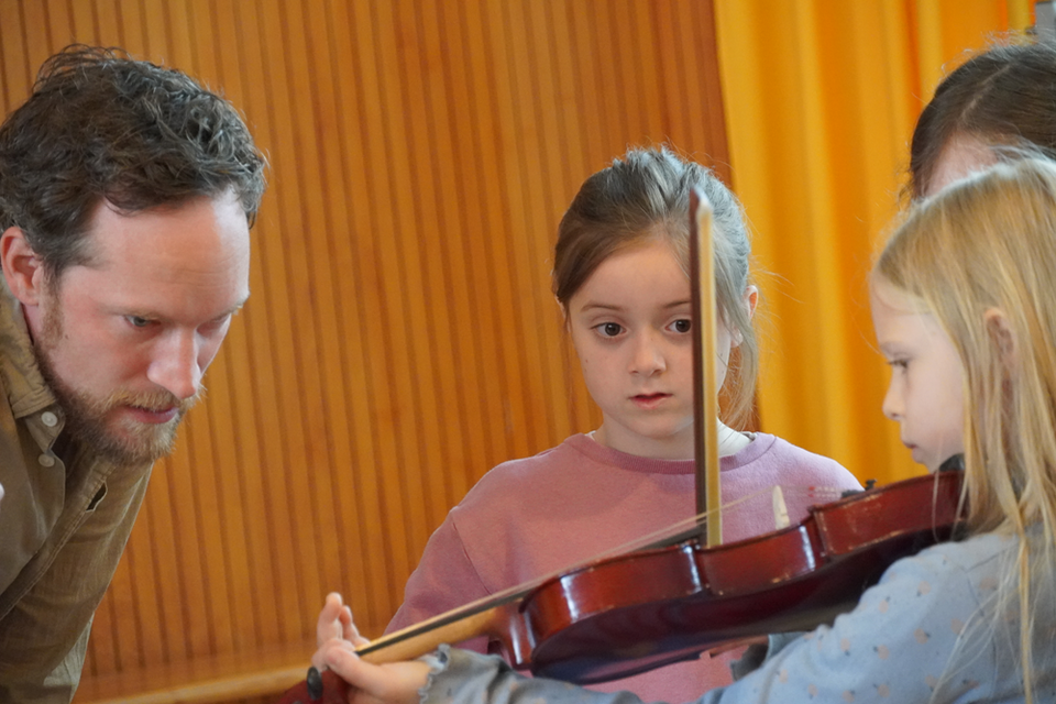 Profis im Klassenzimmer können Sie auch in Kombination mit IKARUS, unserem Instrumentenkarussell, buchen, bei dem die Kinder Instrumente auch selbst ausprobieren können.